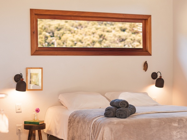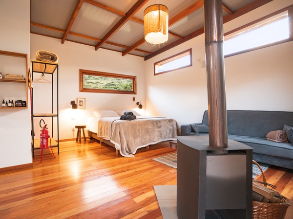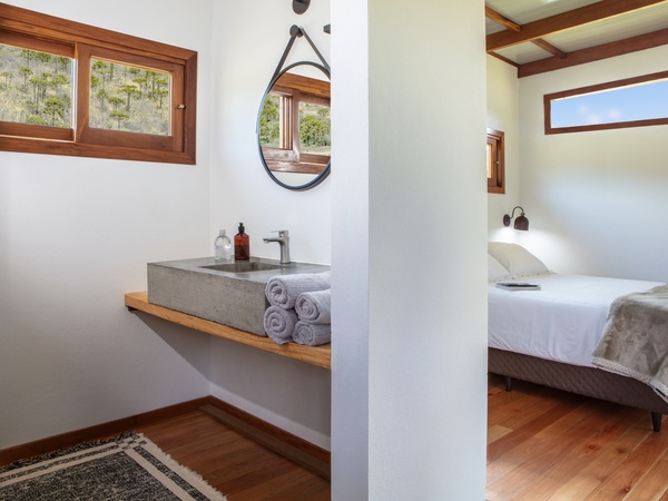 Em frente às cabanas, é possível caminhar até o rio, piscina natural e espaço para piquenique. São pequenos trechos demarcados dentro da área de preservação permanente, que está sendo restaurada com o plantio de muitas mudas nativas.